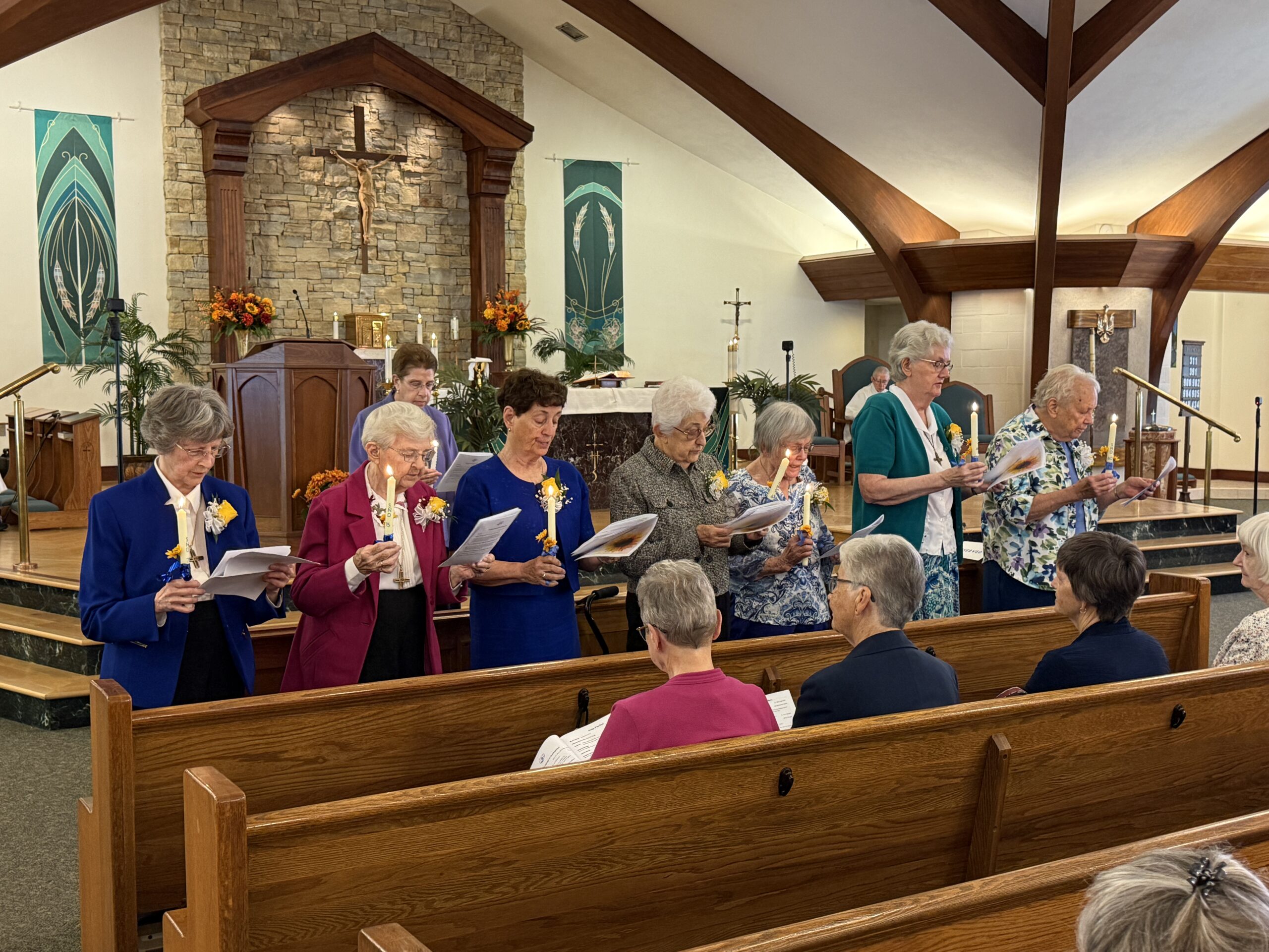 - Jubilarians gather to celebrate at the Ipswich Province Center chapel.